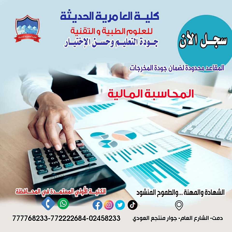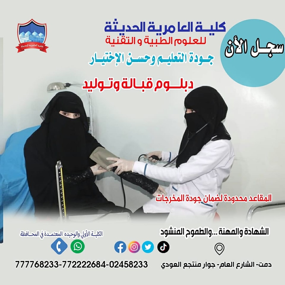 بناء على إعلان وزارة التعليم الفني والتدريب المهني والخاص بتمديد فترة التنسيق والتسجيل للكليات الخاصة عبر البوابة الإلكترونية حتى تاريخ ٢٠٢٣/٩/٢٥تعلن ...كلية العامرية الحديثة للعلوم الطبيه والتقنيه عن إستمرار القبول والتسجيل للعام الجامعي الحالي ٢٠٢٣- ٢٠٢٤ في جميع الأقسام والتخصصات التالية.#دبلوم... إقرأ المزيد